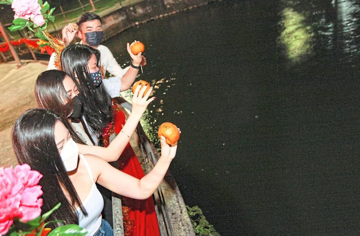 How Malaysia celebrates Yuanxiao Jie, or Chap Goh Meh; yes, the oranges are real